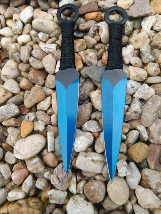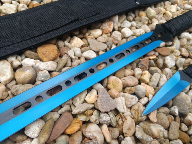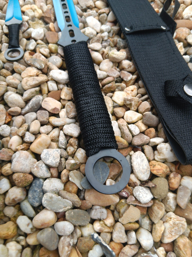 Blau-schwarzes Macheten-Wurfmesser Set 3-teilig