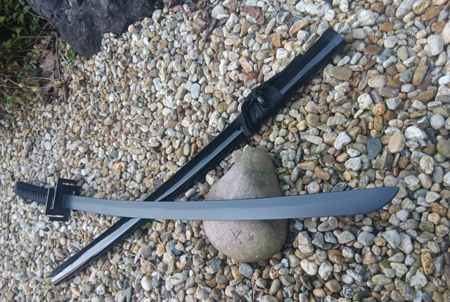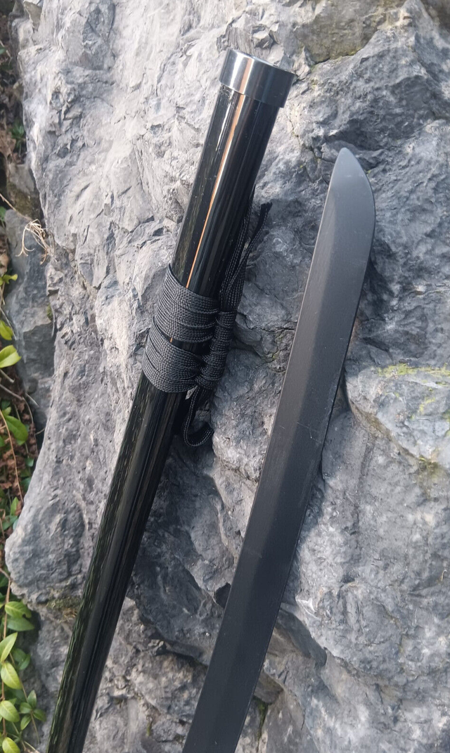 Daten: Gesamtlänge 102 cm, Klingenlänge 70 cm, Stärke 7 mm, Gewicht 530 g, Klingenmaterial Bambus. Die Klinge ist stumpf – perfekt für Ausstellung & Präsentation.