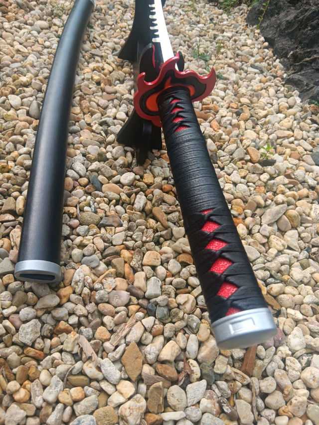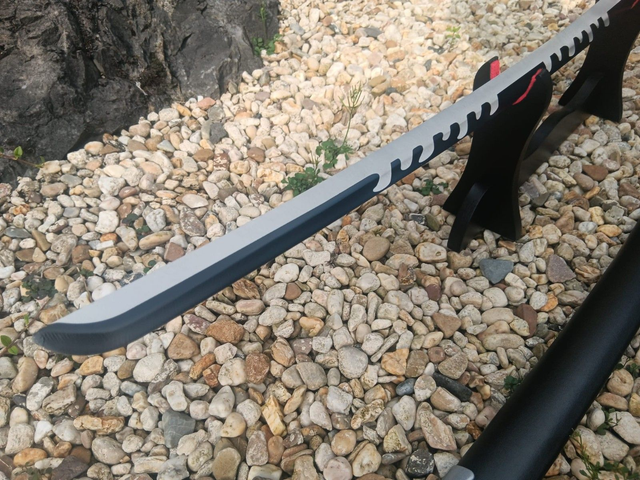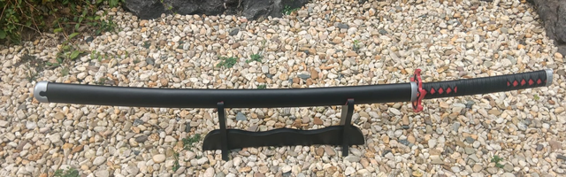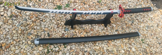 Tauche ein in die Welt von Demon Slayer mit diesem schwarz-rot-weißen Katana Schwert im originalgetreuen Design. Die hochwertige Optik und die detailreiche Verarbeitung machen es zu einem echten Blickfang für jede Anime Sammlung.