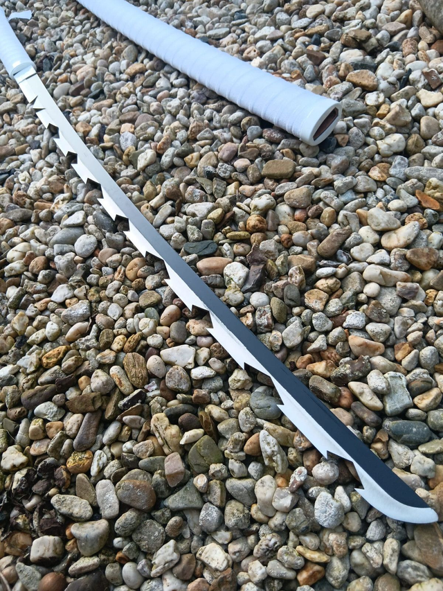 NEU – Das gezackte Katana im „Demon Slayer – Inosuke Hashibira“-Stil überzeugt mit markant weißem Design, passender Schwertscheide und stabilem Schwertständer. Ein Highlight für echte Demon Slayer Fans und Anime-Sammler.