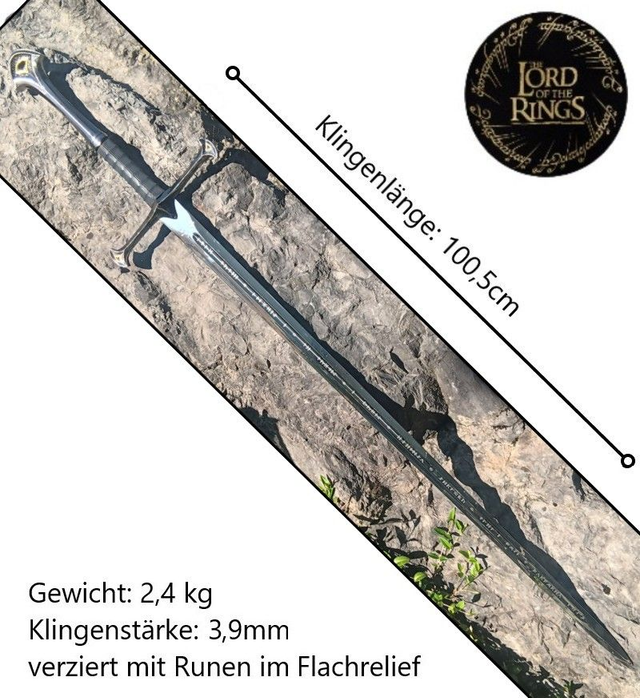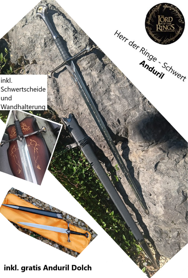 Zusätzlich erhalten Sie einen gratis Dolch im Design von Andurils Schwert im Wert von 20 €. Dieses beeindruckende Sammlerschwert ist ideal als Geschenk, Sammlerstück oder für einen authentischen Cosplay-Auftritt auf der CosplayCon sowie zu Halloween oder Karneval.