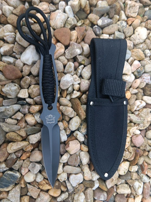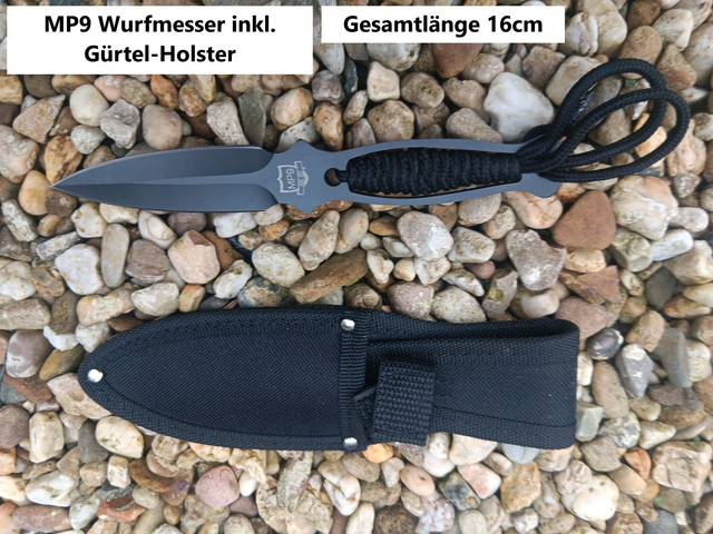 NEU: Schwarzes MP9 Wurfmesser inkl. Gürtelholster – das ideale Geschenk für Sammler, Cosplay-Fans und Messerliebhaber.