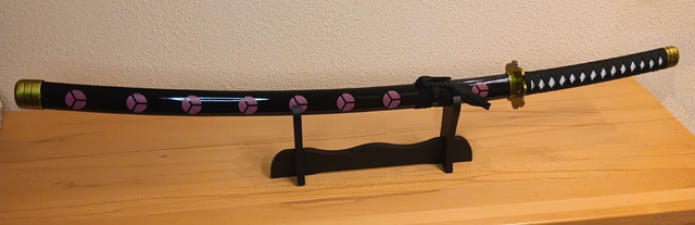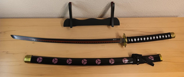 Die stumpfe Klinge eignet sich für Ausstellung und Vorführung. Holen Sie sich dieses beeindruckende Roronoa Zoro Katana und vervollständigen Sie Ihre One Piece Sammlung stilvoll.