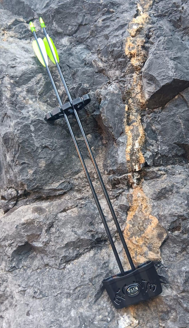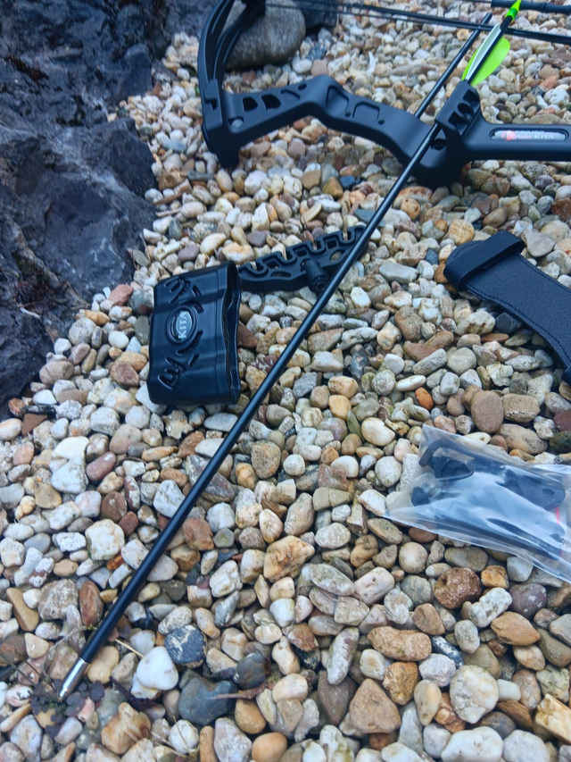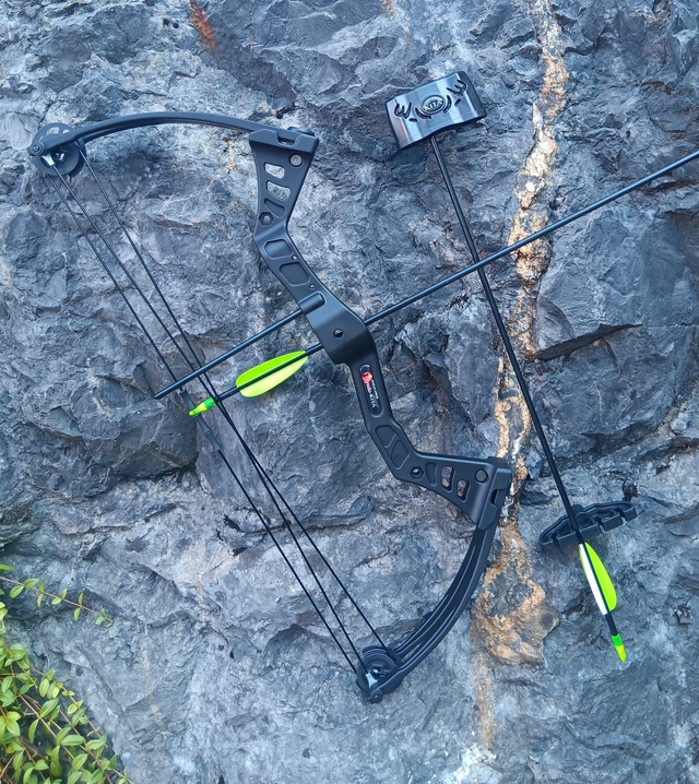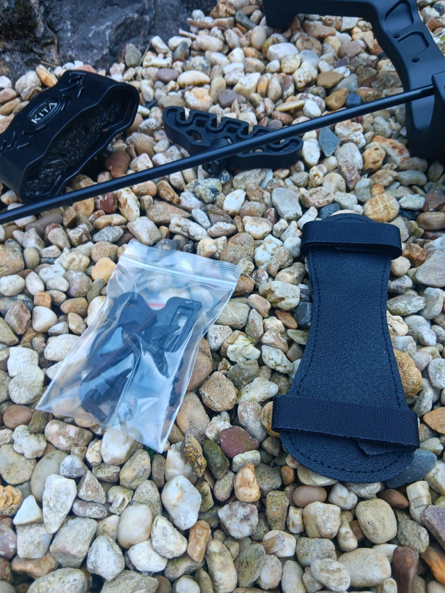 Der Compoundbogen Kita kommt inklusive 2 Pfeilen, Stabilisator, Fingerschutz, Armschutz und Pfeilhalter.