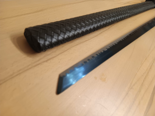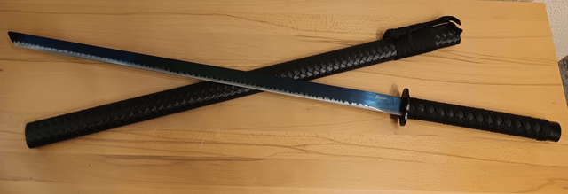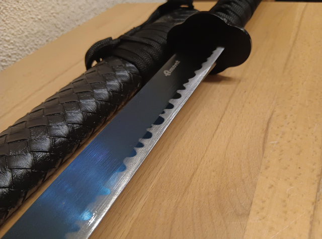 NEU – Thommys Things präsentiert dieses elegante Samurai Katana Schwert mit blau schimmernder Carbonstahl-Klinge.