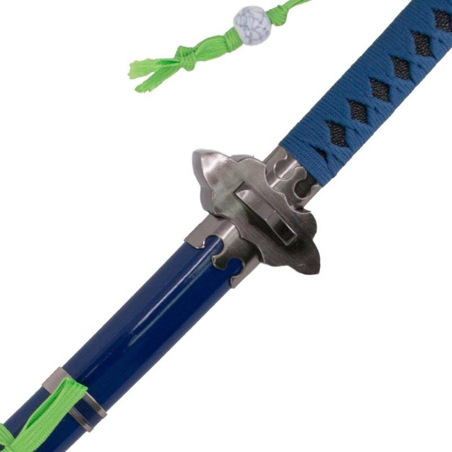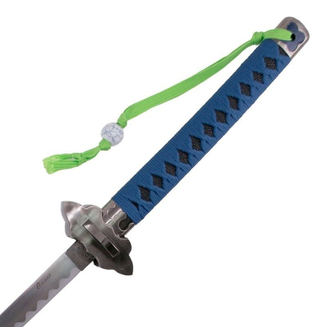 Mit 107 cm Gesamtlänge, markantem blauen Griff mit imitierter Rochenhaut und 66,5 cm Klinge überzeugt dieses Katana Deko-Schwert Sammler und Liebhaber der fernöstlichen Kultur gleichermaßen. Ideal als Dekoration für Zuhause oder Büro.