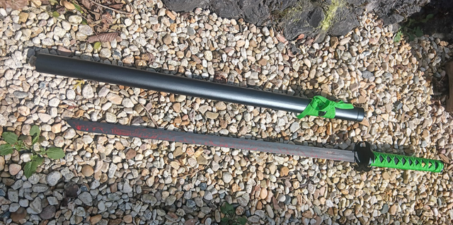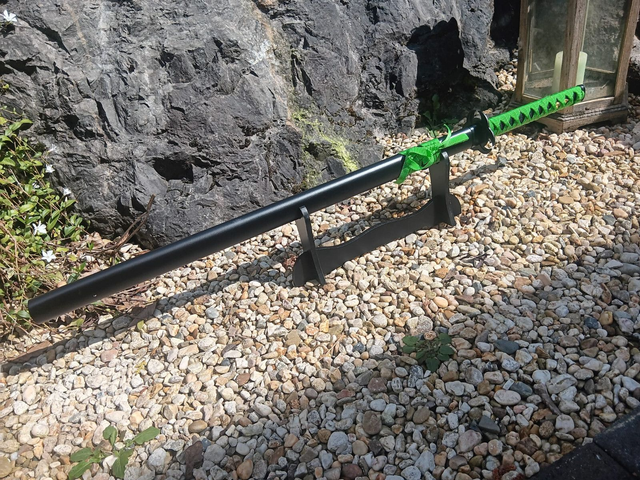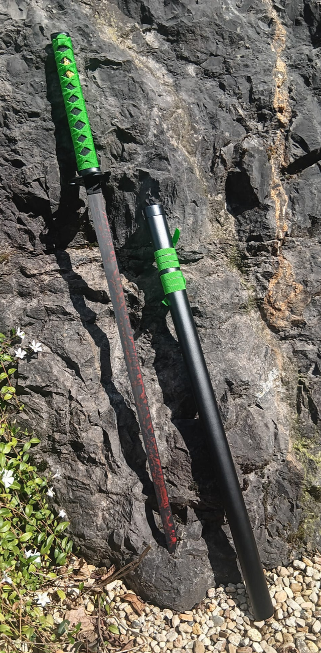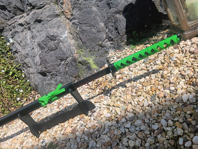 NEU – Das schwarz-grüne Katana im „Zombie Dead Biohazard“-Stil begeistert mit markantem Look, schwarzer Schwertscheide und passendem Präsentationsständer. Ein echter Hingucker für Fans von Samurai, Zombie-Design und außergewöhnlicher Deko.