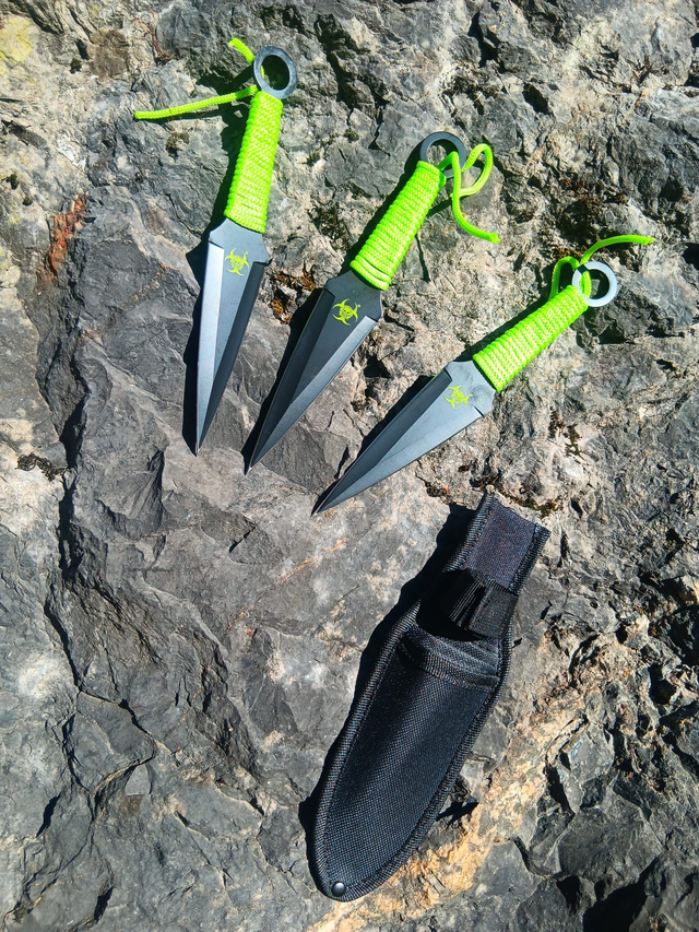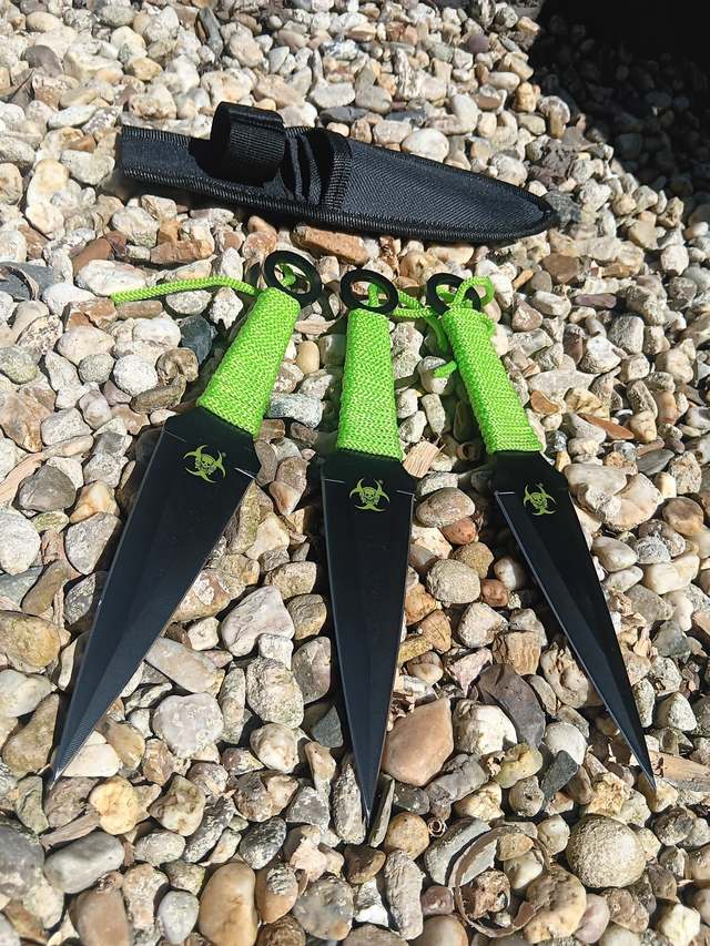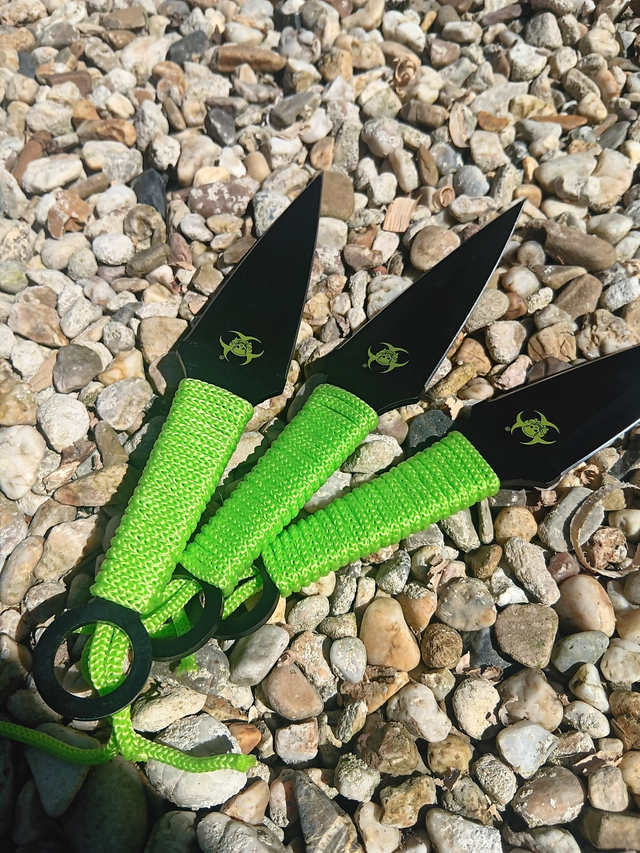 NEU Schwarz-Grünes Wurfmesser 3er Set im Zombie Dead Biohazard Stil
